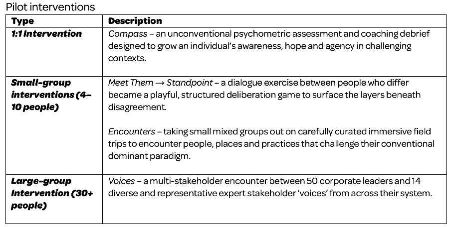 This autumn we approached this question through several pilot interventions with clients and partners. Some were builds on things we’ve done before, and others entirely new. All of them are in various stages of early development so we share them in the spirit of open inquiry.